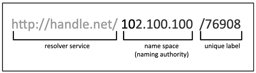 The ARDC Handle Service product allocates non-meaningful numeric identifiers within the 102.100.100 namespace.