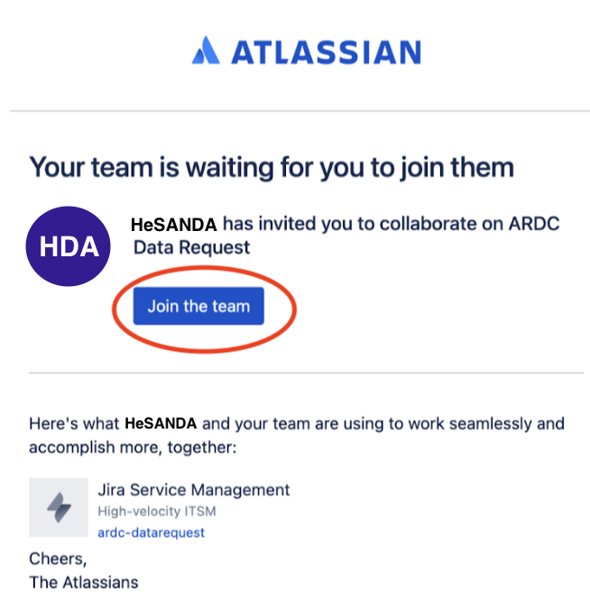 By default, you will be given access to Jira Service Management. Verify that you have received the email then lick 'Join the team.