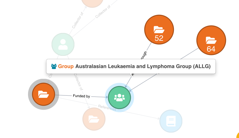 Note: Vertices can represent objects which do not exist as a record in Health Data Australia e.g. a publication vertex representing a related study