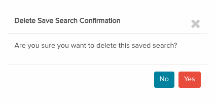 To delete any saved search, simply click the "Delete" button on the same row. A confirmation pop-up window will appear to ensure you want to proceed with the deletion: