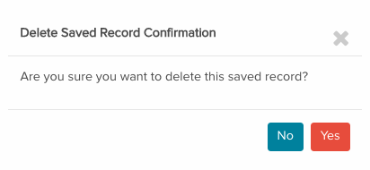 To delete any saved record that you no longer want to keep, simply click the "Delete" button. A confirmation pop-up window will appear to ensure you want to proceed with the deletion: