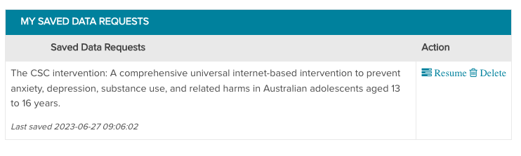 My Saved Data Requests