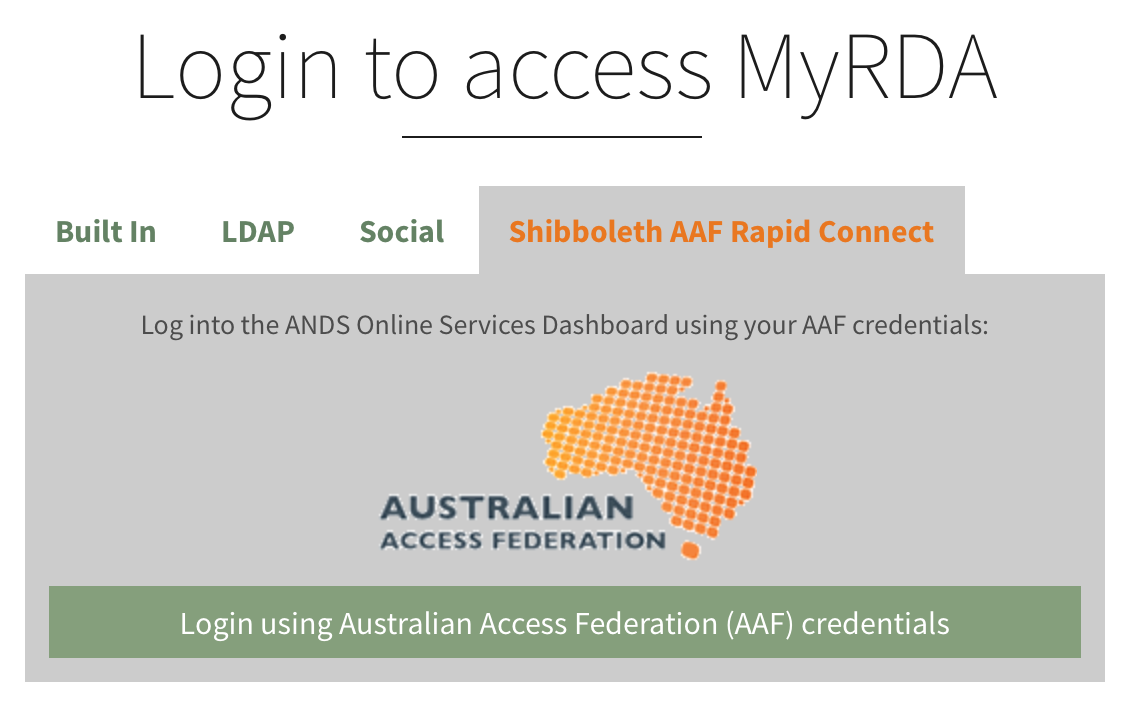 - Select your authentication method (usually AAF) and log in. You will be navigated to your MyRDA account.