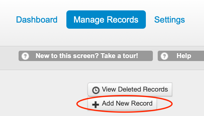 'Add New Record'button on the right hand corner of the screen.