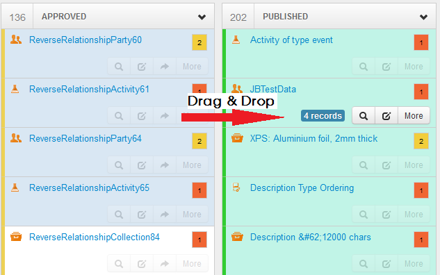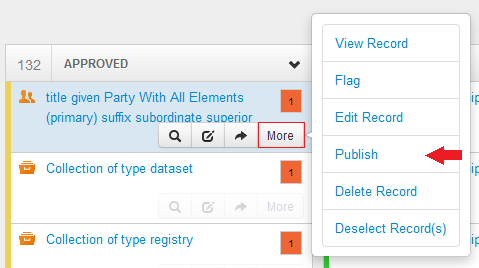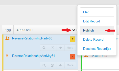 - Select the status option you would like to move the record to. E.g. 'Publish'