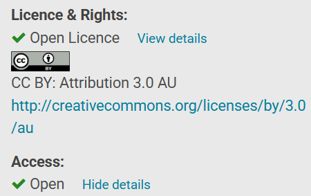 <licence type="CC-BY" rightsUri="http://creativecommons.org/licenses/by/3.0/au"></licence>