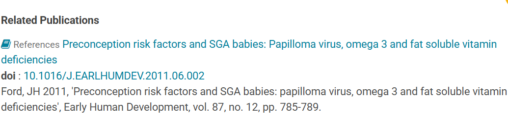 <title>Preconception risk factors and SGA babies: Papilloma virus, omega 3 and fat soluble vitamin deficiencies</title>