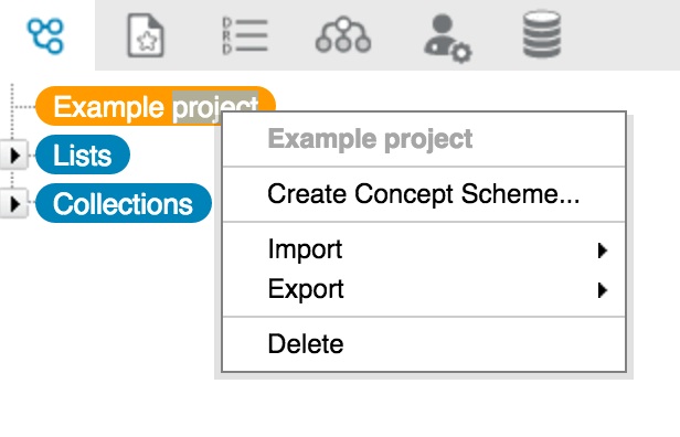 Right-click on your project title in the thesaurus management tree on the left-hand side of the screen (it will be highlighted in orange)