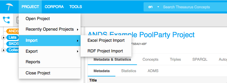 Locate the PoolParty Project in which your vocabulary will be uploaded