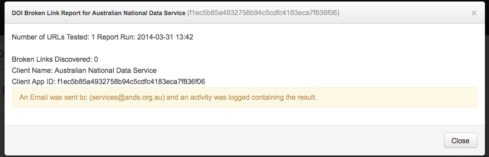 Cite My Data users will now receive a quarterly report identifying any broken links associated with their DOIs. This report can also be run on demand from the DOI Query Tool: My Identifiers > Digital Object Identifiers (DOIs) > Check DOI Links in ANDS Online Services. Learn more.