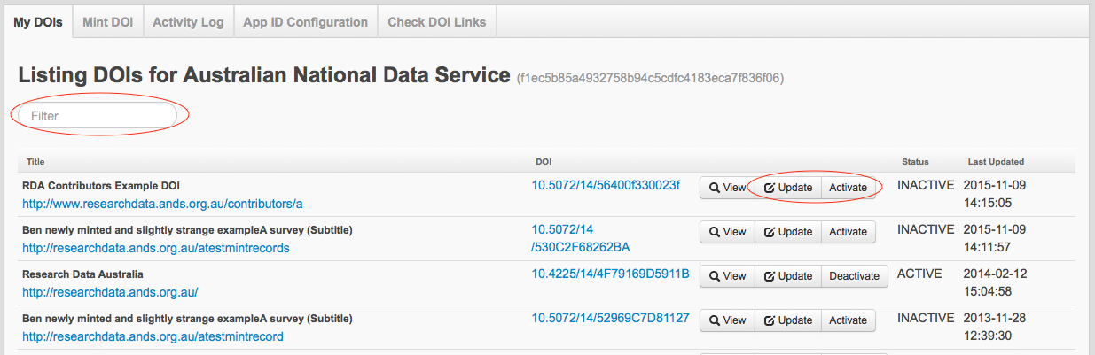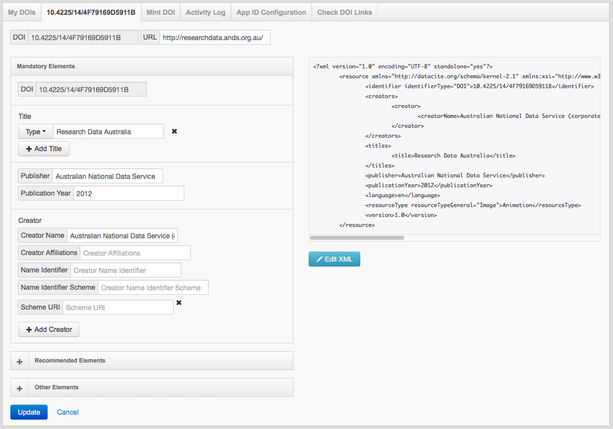 As well as updating our DataCite schema version to the latest v3.1, we are also improving MyDOI. The introduction of a filter button makes searching for a minted DOI even easier. The new manual minting form is not only simpler but it is also used to edit or update a DOI. Users will be provided with an option to update a DOI either by editing the XML or editing the metadata field directly. In just a click of a button, users can now easily activate or deactivate a DOI.